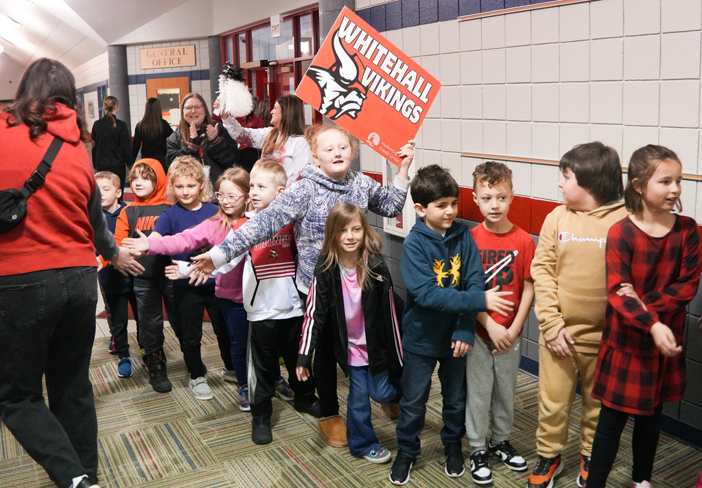 On Wednesday (Feb. 4, 2026), female student-athletes from Whitehall High School paraded through the hallways at Shoreline Elementary, Ealy Elementary, and Whitehall Middle School before engaging in a seminar and luncheon with four guest speakers at the Viking Athletic Center.